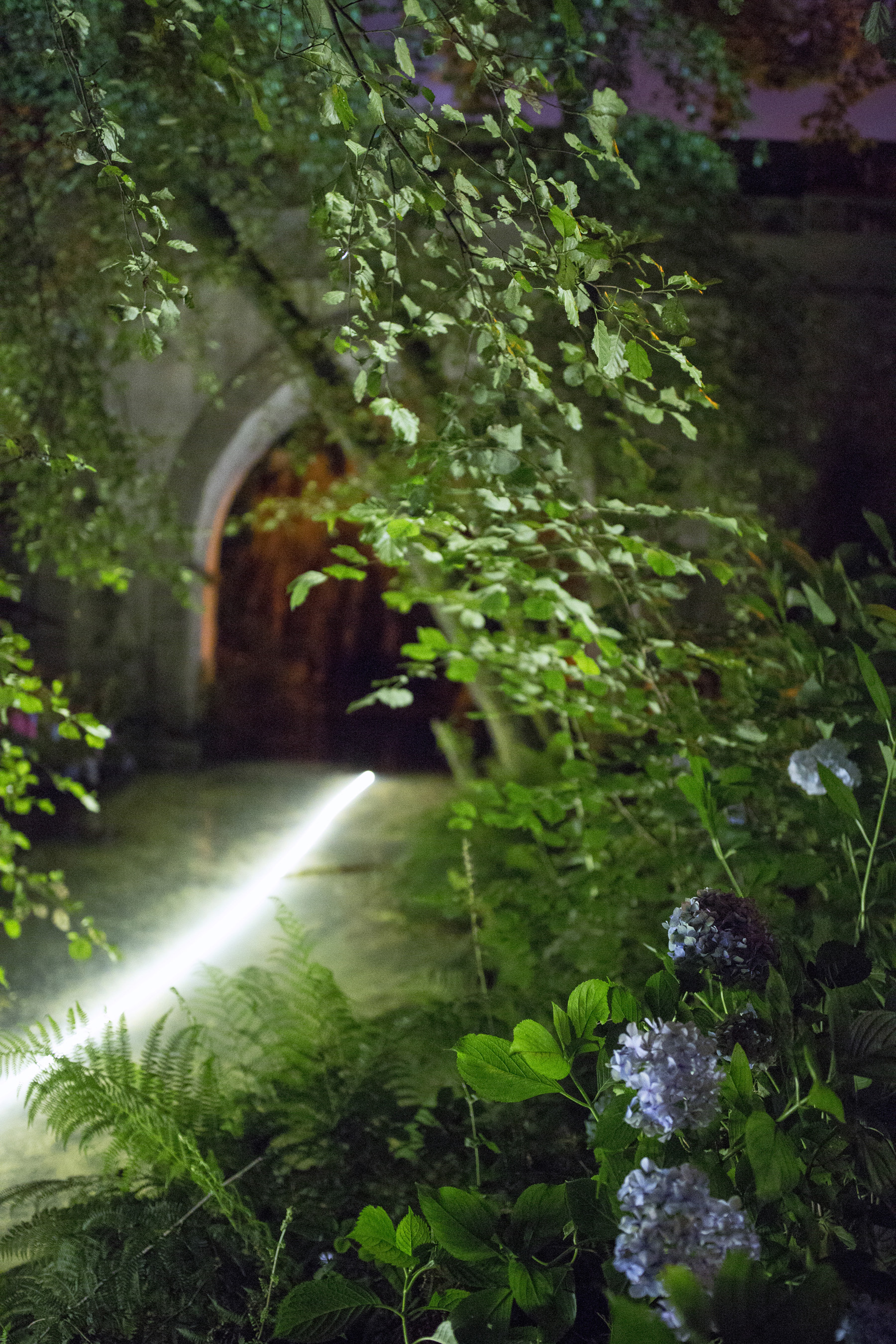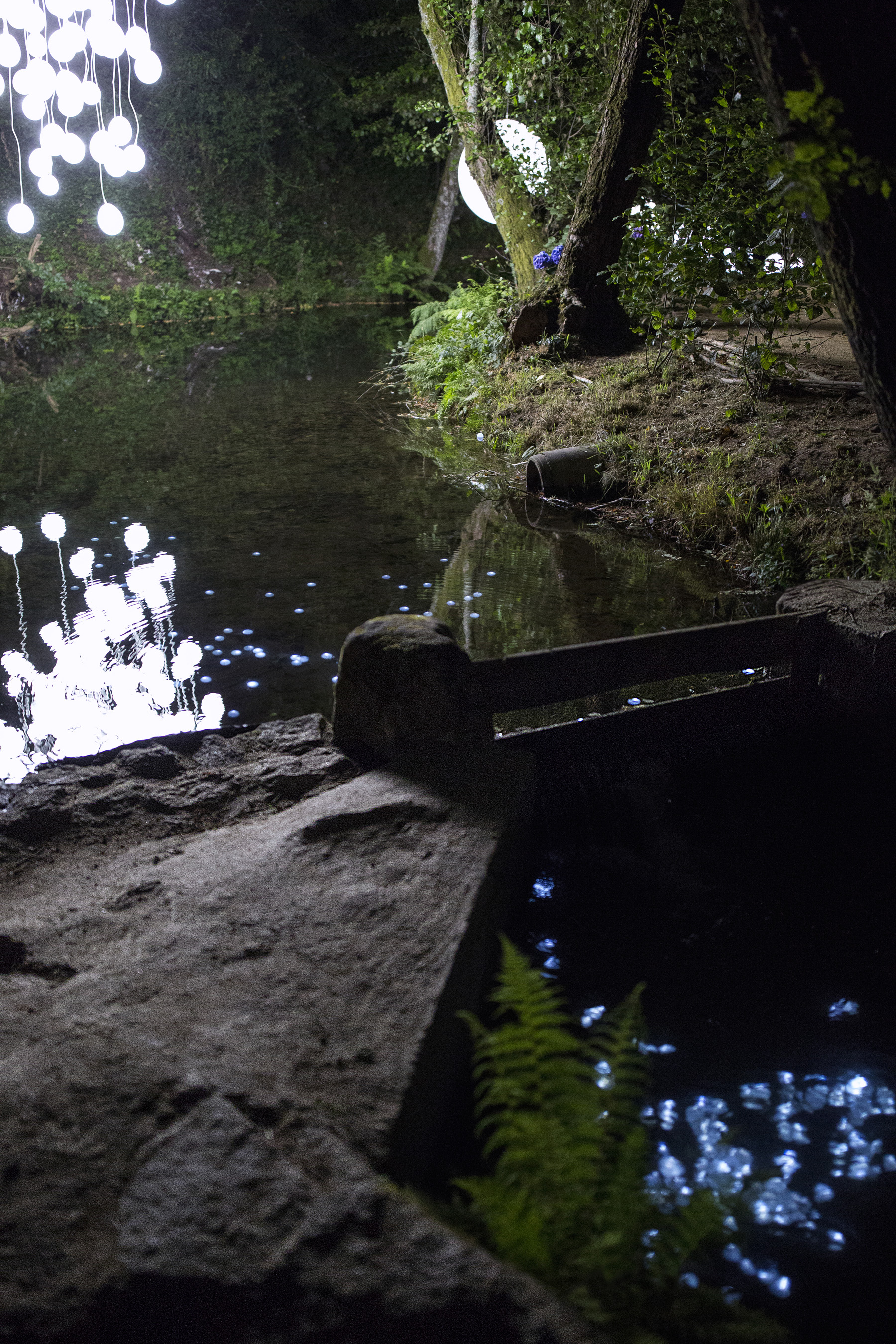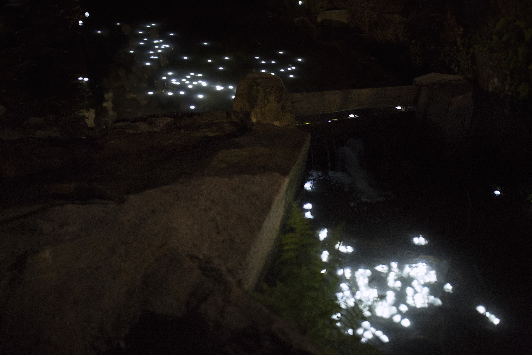 the intervention marks the culmination of a nocturnal trail along a section of the Uíma River.