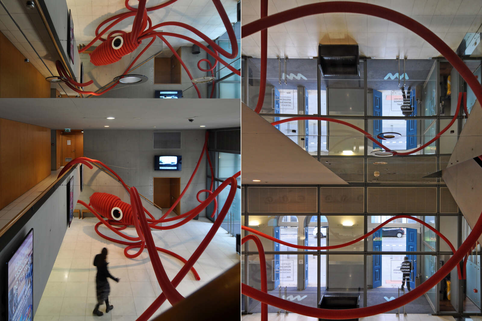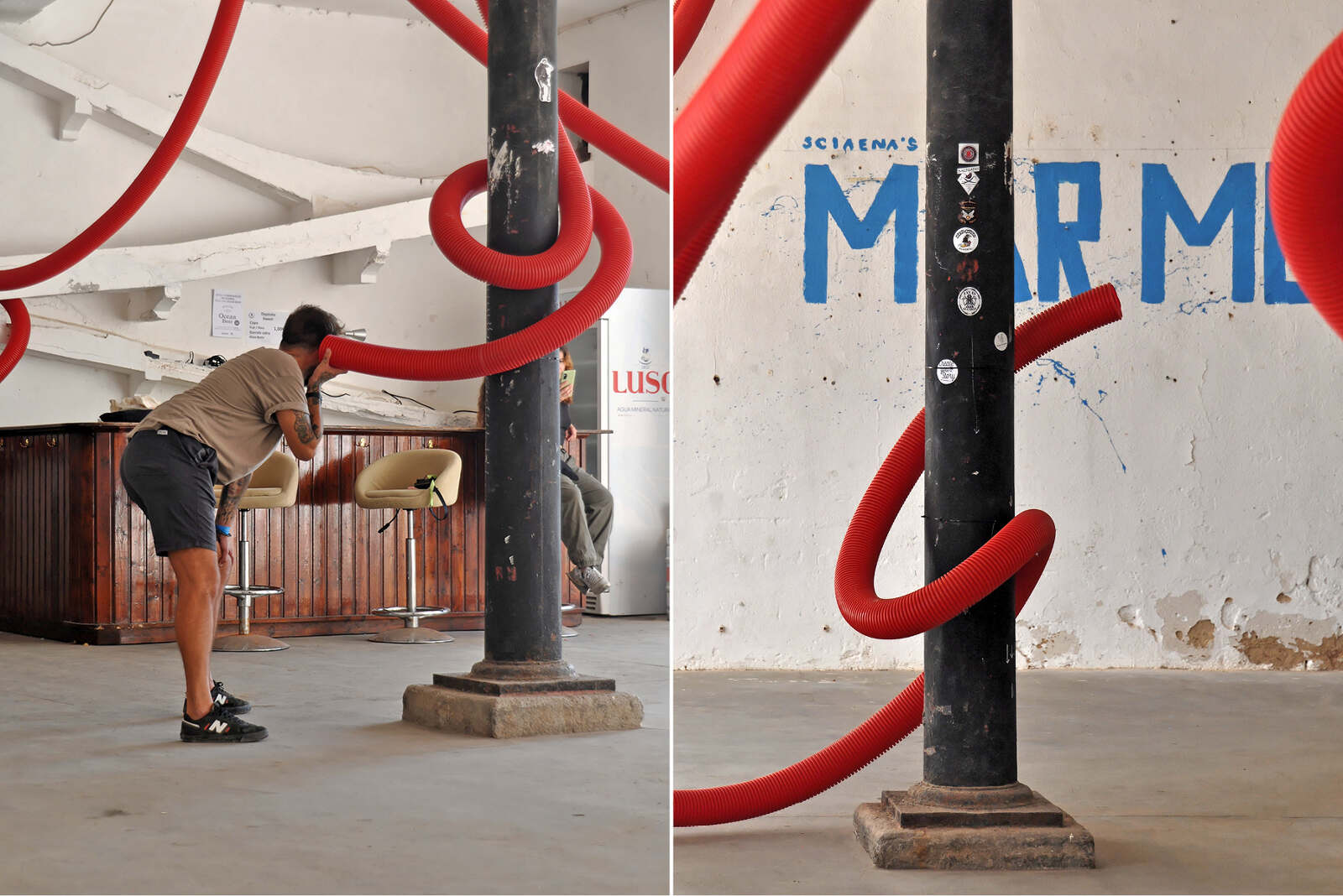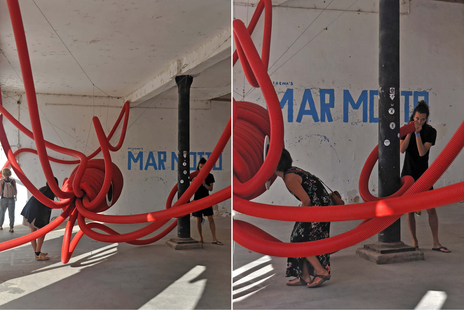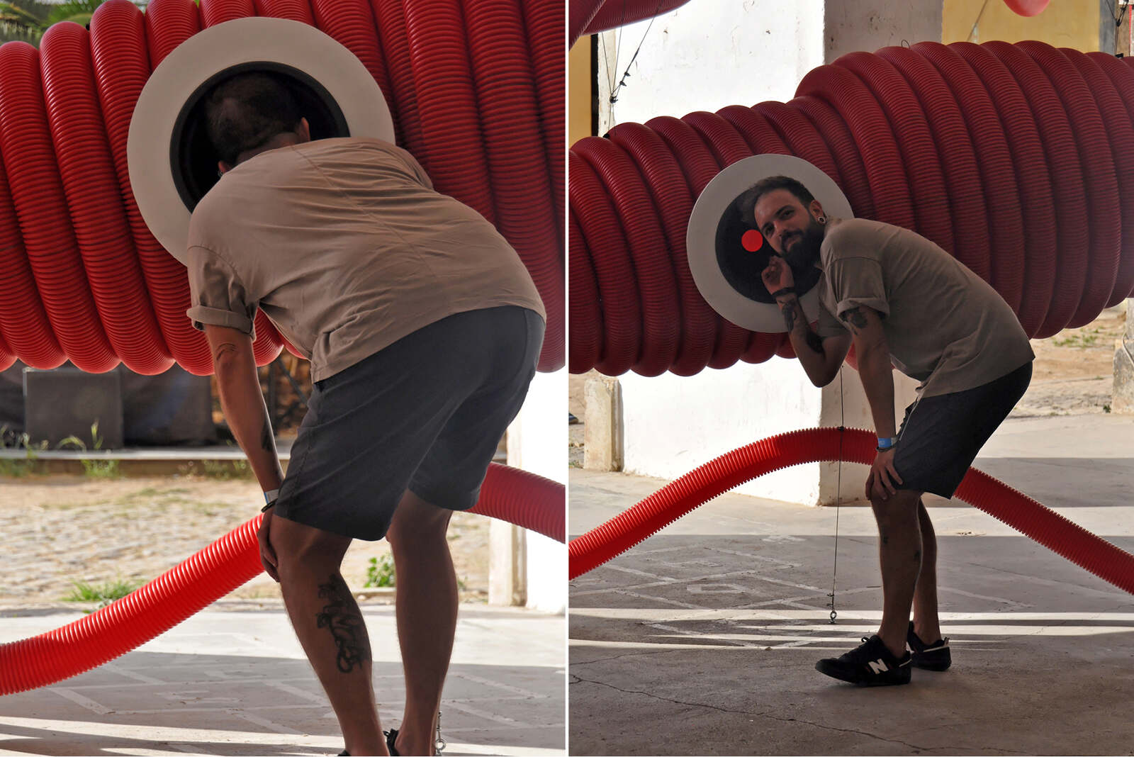 Visiting the magical territory of Ria Formosa for the 2024 edition of the Mar Motto festival, Lumy brings the usual good mood and warmth that characterize this species to the old “Fábrica da Cerveja” in Faro. It is ready to throw its friendly tentacles around all those who approach it and serve as a “bridge” between festival attendees from all walks of life.