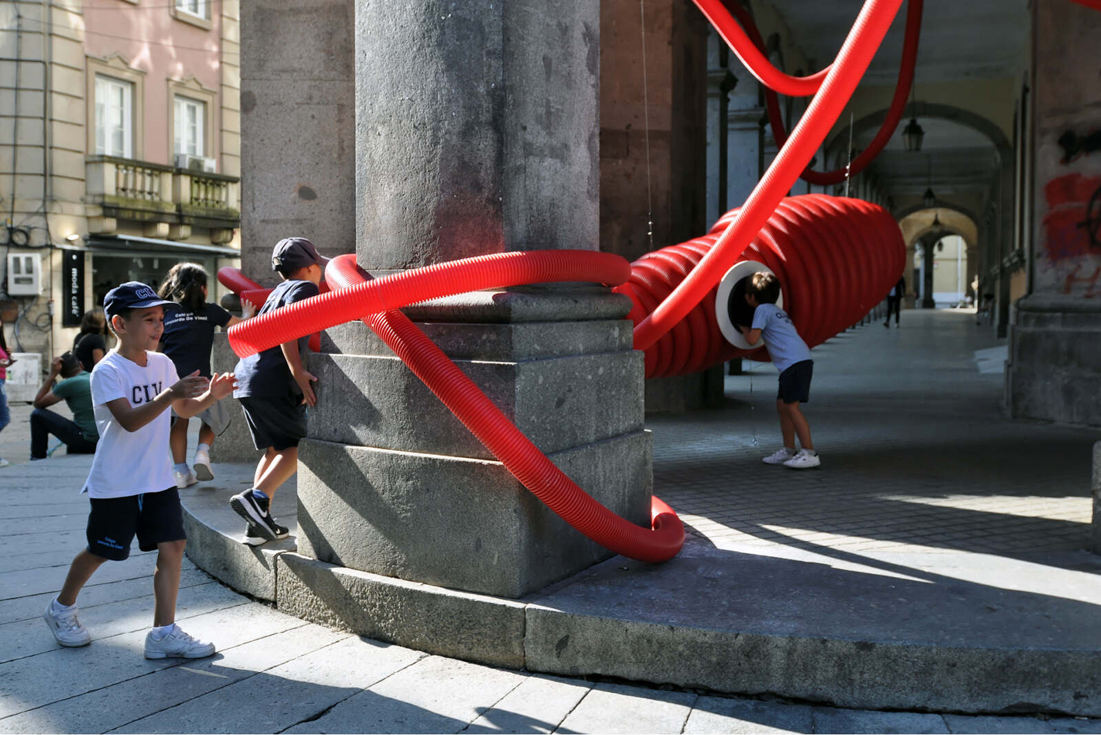 Additionally, it adds a new dimension by reacting with light to the sounds produced by those who interact with it, thanks to João Dias-Oliveira from Fiume Designs, who collaborates on the electronic programming of the piece."